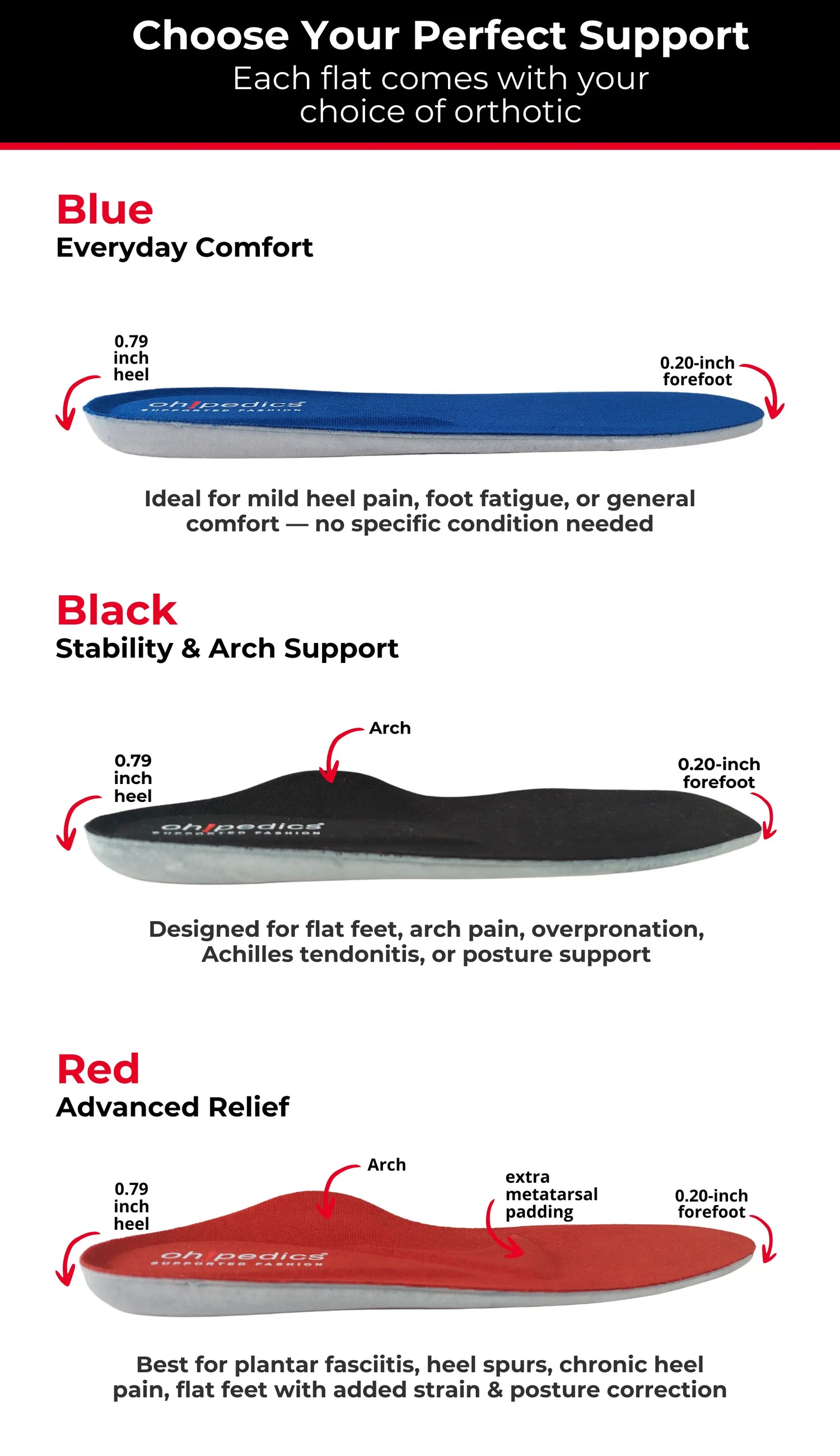 “I have Achilles tendonitis, so I used to rely on sneakers just to get through the day. But now I wear my oh!pedics flats everywhere—they feel amazing and look even better.”